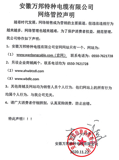 鄭重聲明:安徽萬邦特種電纜有限公司官方網站為:www_wanbangcable_com.bjhskd.com,除此之外無任何子網站或合作網站,其余均為假冒偽劣。電話:0550-7621728 13485756353 地 址:安徽省天長市滁州高新技術產業開發區經四路29號
